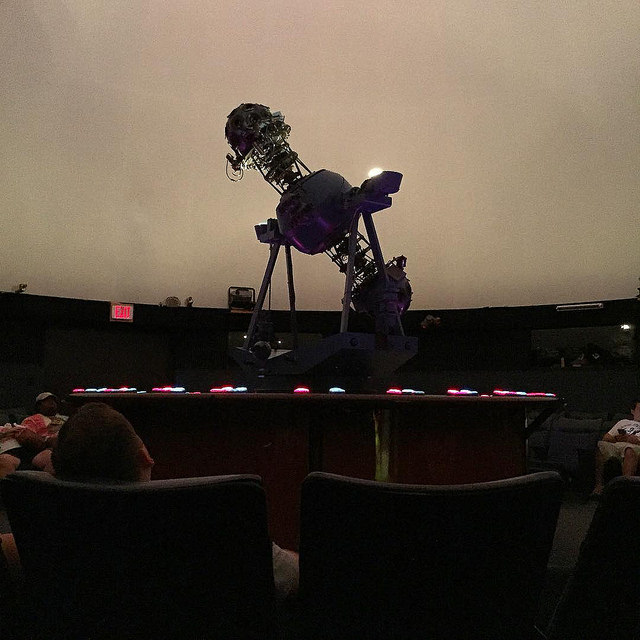 We generally don’t make any plans in advance when we take these little get-aways but this time I had a couple of things in mind. If you follow me on Facebook you probably know that David and I love to stargaze. A few weeks ago it occurred to me that there is a small planetarium at the OKC Science Museum. After lunch at The Garage Burgers and Beer (quite tasty, by the way) we headed to the museum. The planetarium is included in the general admission to the museum and since we had about a 40 minute wait until the next show we decided to walk around and check out the museum. It’s a cool, hands-on place. We had taken our kids a few times but it’s been YEARS since we’d been there. Yeah, it’s kind of for kids but we still had fun.